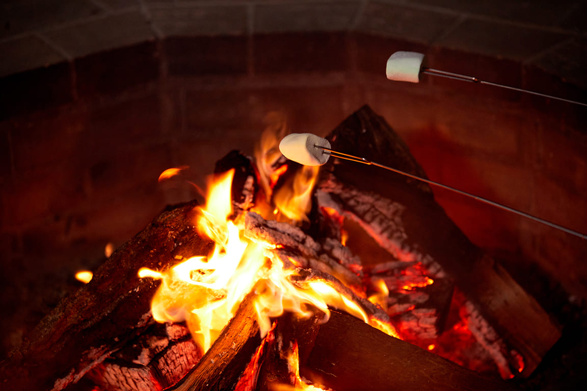 在可遠眺大海的廣場營火旁,體驗烤棉花糖的樂趣。 一邊聆聽海浪與營火聲,一邊享受寧靜療癒的夜晚時光。